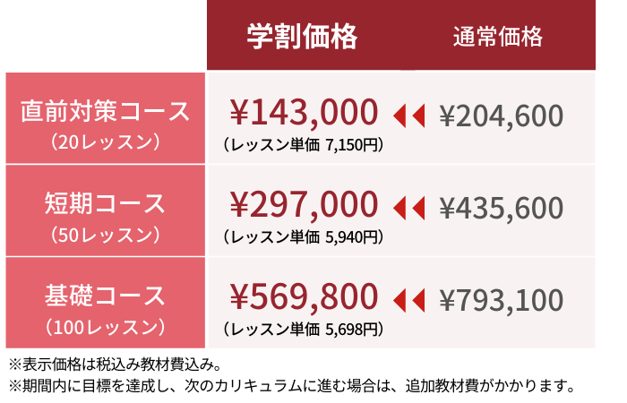 入学金免除・教材費実費の特別価格72,000円(税込)